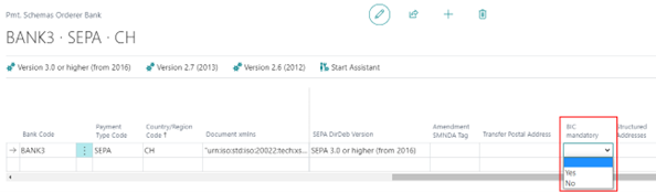 For SEPA direct debits it is now valid in addition to the BIC code that also the address (of the payer) has to be checked if the bank of the payer is located outside the European Economic Area. A setup is accordingly possible in OPplus in the payment transactions schemas.