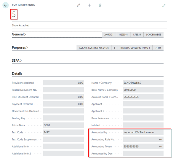 Based on the specifications made in the OPplus Setup, in the Accounting Hint Texts as well as in the Accounting Rules, the system will try during the import process to apply open entries and to perform further pre-accounting.